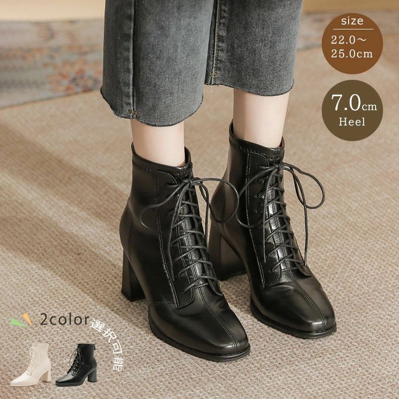 【3点15%offクーポン配布中! ショートブーツ ハイカット ブーツ レディース レースアップブーツ スクエアトゥファスナー付き ブーツ 太ヒール 編み上げ 靴 女生 美脚 PU 無地 痛くない 履きやすい 英国風ブーツ スタイルアップ 軽量 シンプル カジュアル 通勤