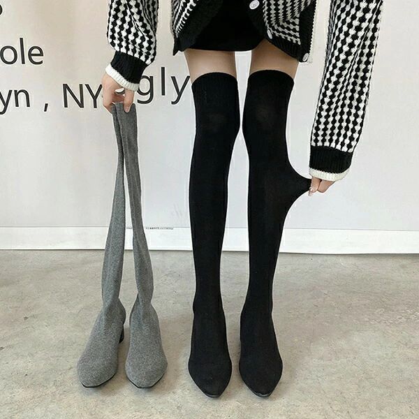 【3点15%offクーポン配布中! ソックスブーツ ブーツ レディース ニーハイブーツ ストレッチ スエード ブーツ 美脚 チャンキーヒール 膝丈 4.5cmヒール ハイカット 韓国風 シューズ 靴 太ヒール カジュアル おしゃれ 滑り止め 耐磨耗 通勤 秋 冬【動画あり】