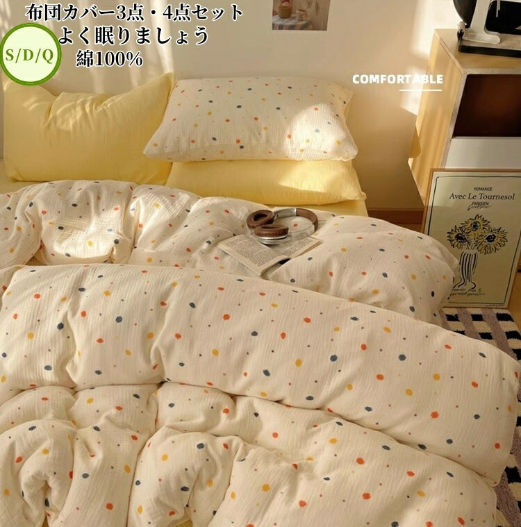 掛け布団カバー 綿 布団カバー 4点セット フラットシーツ シングル ダブル キング 布団カバーセット 3点セット 新生活 枕カバー INS風 敏感肌 寝具カバーセット ボックスシーツ 洗い替え 肌に優しい 掛ふとんカバー 寝具 ベッドカバーセット 丸洗いOK 通気性 四節適用