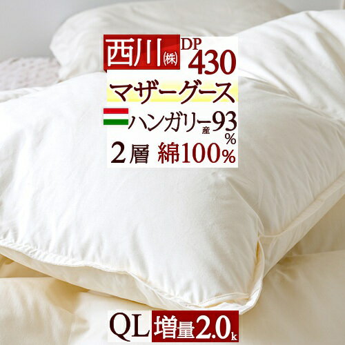 12/1限定★11%OFFクーポン マザーグース 西川 クイーンサイズ 羽毛布団 クィーン グース 増量2.0kg ハンガリー産マザーグース 羽毛ふとん ダウン93% DP430 2層式 二層 綿100%生地 日本製 西川産業 掛け布団 クイーン ◇