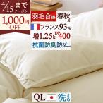 羽毛合い掛け布団 クイーン フランス産ホワイトダウン93% 増量1.25kg 春秋用 ロマンス小杉 日本製 コインランドリー可 抗菌