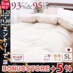 羽毛布団 シングル 冬用 二層 マザーグースダウン95% 日本製 寒冷地 ポーランド産 増量1.2kg プレミアムゴールドラベル 100番手サテン 綿100%
