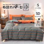 布団カバー 3点セット 4点セット シングル ボックスシーツ 寝具 枕カバー 柔らかい 肌に優しい 洋式和式兼用 ベッド用 洗える 掛け布団カバー ボーダー