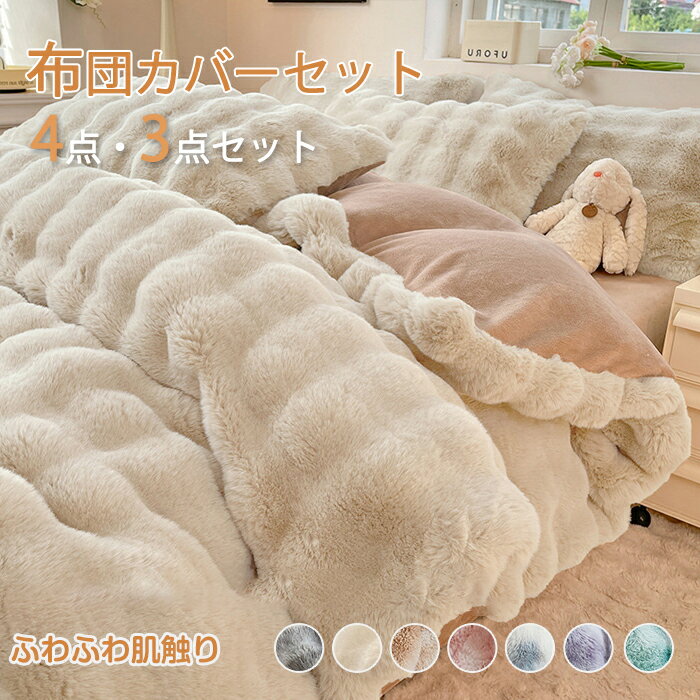 【人気毛布12%OFFクーポン】『SNS人気商品』 布団カバーセット もこもこ 枕カバー別売り可 4点セット 3点セット ダブル あったか ふわふわ 寝具カバー セット ふとんカバー フェイクラビットファー 暖かい おしゃれ かわいい 厚手 洗える 保温 防寒 冬用