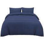 uxcell PiccoCasa 布団カバー 枕カバー セット 布団カバー1枚(230x230cm)+枕カバー2枚(51x76cm) 紺