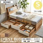 ベッド チェストベッド シングル シングルベッド 収納 宮付き フレームのみ 引出し付き ベッドフレーム コンセント付き LEDライト おしゃれ 北欧