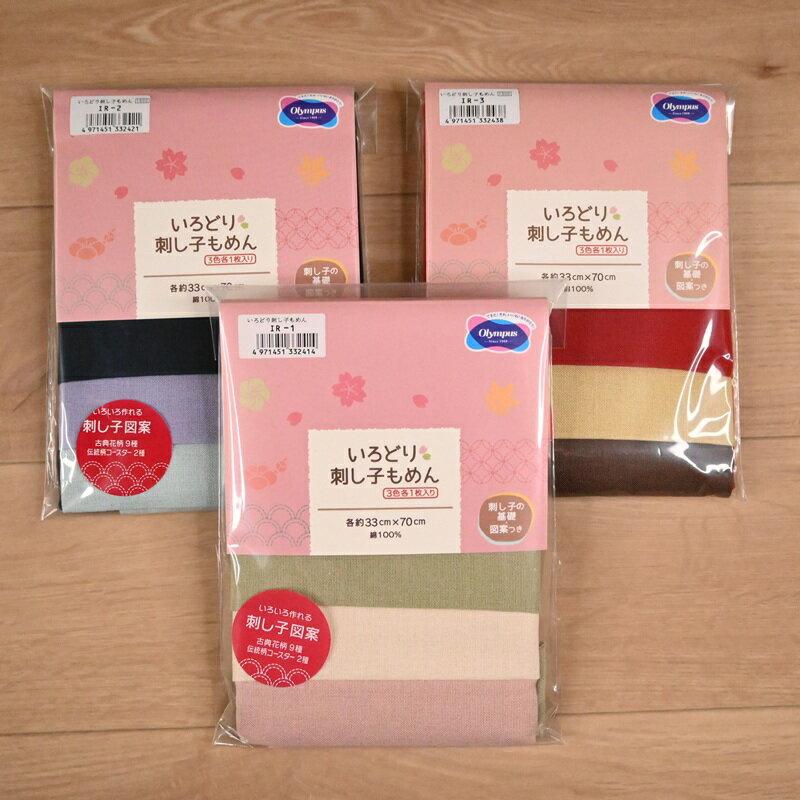 【スーパーセール10%OFF】オリムパス いろどり刺し子もめん (3色各1枚入) IR-1・IR-2・IR-3 刺し子布 木綿布 ハンドメイド Olympus
