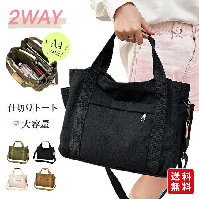 \12%OFF 3/11まで/トートバッグ レディース キャンバス 大容量 仕切り バッグ 帆布 自立 マチ広 A4 ハンドバッグ マザーズバッグ ランチバッグ 軽量 収納 通勤 通学 シンプル 手提げ 肩掛け おしゃれ 無地 ファスナー付き