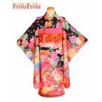 D21-0138K/五歳着物セット/レンタル/女の子/05-197MR/七五三/5歳/5歳着物/結び帯/はこせこセット/草履バックセット/絵羽柄/黒/着物レンタル/