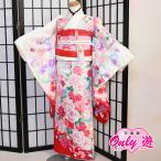 D21-0138K/五歳着物セット/レンタル/女の子/05-198MR/七五三/5歳/5歳着物/結び帯/はこせこセット/草履バックセット/絵羽柄/白/着物レンタル/