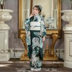 手染め 京友禅 金彩 正絹 振袖 30点 セット 緑 成人式 ふりそで 振袖 袋帯 長襦袢 重ね衿 帯締 帯揚 草履 バッグ ショール 着付け小物 着物スリップ 足袋 { 振袖 振り袖 成人式