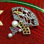 碌山 ルビー シードパール 飛鶴扇 ブローチペンダント 華やかな絵巻をおこしたように雅やか 帯留にも 和デザイン RP 704C0018-RB