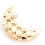 ミキモト ブローチ レディース 1Pパール ムーンデザイン 帯留 月 6.6mm珠 イエローゴールド K18 MIKIMOTO 中古
