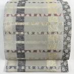 美品 袋帯 逸品 となみ織物 落款あり 草花 波 金銀糸 箔 灰色 六通 正絹 中古