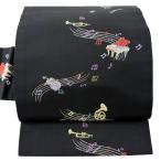 美品 名古屋帯 逸品 楽器 音符 箔 黒 正絹 中古