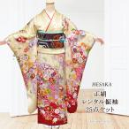 【レンタル】 京友禅 正絹 振袖 25点セット 黄 成人式 ふりそで 振袖 袋帯 長襦袢 重ね衿 帯締 帯揚 草履 バッグ ショール 着付け小物 着物スリップ 足袋