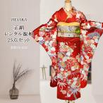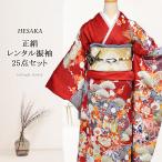 【レンタル】 京友禅 正絹 振袖 25点セット 赤 成人式 ふりそで 振袖 袋帯 長襦袢 重ね衿 帯締 帯揚 草履 バッグ 着付け小物 着物スリップ 足袋