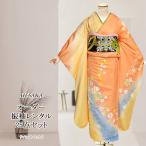 【レンタル】 お仕立付 京友禅 正絹 振袖 30点セット オレンジ 成人式 ふりそで 振袖 袋帯 長襦袢 重ね衿 帯締 帯揚 草履 バッグ ショール 着付け小物 着物スリ