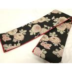 平和屋着物●半幅帯 型染め 菊 黒地 綿 逸品 CABD4235dy