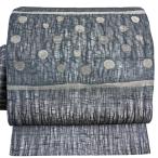美品 名古屋帯 名品 夏帯 幾何学模様 金糸 青灰色 正絹 中古