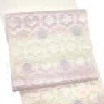 京袋帯 未使用 正絹 京都 西陣 軽量織 軽量帯 薄灰紫 ライトグレー 紫 花唐草 カジュアル 美品 新古品 仕立て上がり みやがわ sb54686