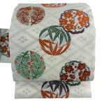 美品 名古屋帯 逸品 人間国宝 喜多川平朗 松竹梅 花丸文 唐織 クリーム 正絹 中古