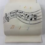 美品 開き名古屋帯 逸品 音符 クリーム 正絹 中古