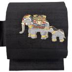 美品 名古屋帯 逸品 動物 花 墨色 正絹 中古