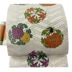 名古屋帯 逸品 喜多川平郎 花丸文 桧垣文 刺繍 クリーム 正絹 中古