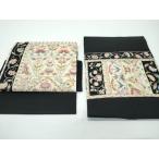 平和屋着物●爪掻き本綴れ 八寸名古屋帯 花絵皿文 黒地 金銀糸 正絹 逸品 CABC8441dy