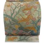 開き名古屋帯 逸品 栗山吉三郎 落款あり 梅 クリーム 正絹 中古