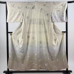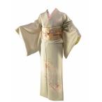 訪問着 身丈153cm 裄丈65.5cm M 袷 紬地 草花 波 金銀糸 刺繍 クリーム 正絹 逸品 中古