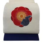 帯 正絹 名古屋帯 「赤色 椿」 お仕立て上がり名古屋帯 お太鼓柄 洒落帯 九寸名古屋帯 カジュアル レディース 洒落帯 (メール便不可)on★20%OFF