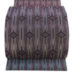 美品 名古屋帯 逸品 佐波理 落款あり 八寸名古屋帯 ダイヤ菱定 縞 菱 箔 紫 お太鼓柄 正絹 中古