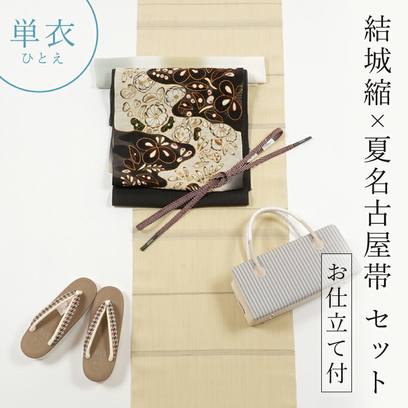 【4/18 20:00-★18thSALE & 10%OFF】着物 セット 正絹 結城縮(単衣仕立て付き)× 上田紬×辻が花染め帯(仕立て付)【お仕立て付き】奥順結城縮 & 根善染め九寸名古屋帯 着物セット 単衣カジュアル