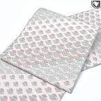 夏帯 名古屋帯 本大麻帯 和染紅型 栗山吉三郎 本麻 花 更紗 白 グレー 九寸帯 染帯 仕立て上がり カジュアル お洒落 r980 Si