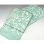 九寸名古屋帯 ペルシャ花文 薄青磁 正絹 未仕立て よろけ織 まこと織物 手織り 西陣織