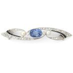 【緑屋質屋】ミキモト 非加熱サファイア・ダイヤ 帯留め アンティーク プラチナ【中古】