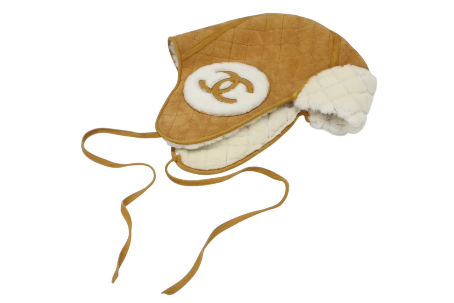 新品未使用 CHANEL シャネル ココネージュ フライトキャップ ウシャンカ AAA429 ココマーク ムートン スウェード 中古 4b008210