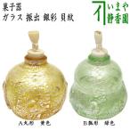 茶道具 菓子器 干菓子器 ガラス 硝子 義山 ギヤマン 振出 銀彩 貝紋 丸形 黄色又は瓢形 緑色 茶道