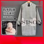 割烹着 スモック エプロン かっぽう着 作業服 防水 仕事着 防油 水回り作業 うわっぱり チェック柄 後ろ開き 汚れ防止 長袖 ポケット付き
