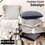 カバー 座布団カバー 枕カバー 45 45cm 綿麻混 インテリア 北欧風 正方形 スクエア 角型 タッセル フリンジ