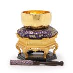 仏具 18金 イエローゴールド おりん 直径10.5cm 3.5寸 重量470g りん棒・りん台・座布団・桐箱付属 財務省造幣局検定マーク(ホールマーク)入り 受注生産|K18YG k18 18k 貴金属 御鈴 オリン 仏壇 法事 法要 祭事 置物 メモリアル ホールマーク入り