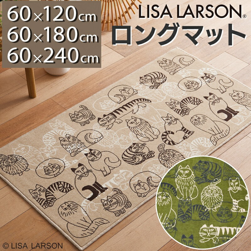 リサ・ラーソン LISA LARSON ロングマット 幅60cm 長さ120cm 180cm 240cm スケッチ SKETCH(全2色)キッチンマット 玄関マット 廊下敷きマット マルチマット 抗菌 防臭 ウォッシャブル 洗える 滑りにくい 薄型 軽量リサラーソン Lisa Larson ネコ 猫