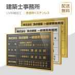 建築士事務所登録票 看板◆額縁付 金看板 選べるフォント ヘアライン調 リッチ 高級 建設業許可証明書元請業者 アルミ複合板 建設業許可票 金 銀 黒 ゴールド シルバー ブラック 送料無料