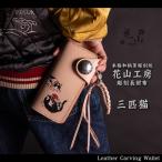デグナー 長財布 彫刻 和柄 花山 本革 三匹猫 タン