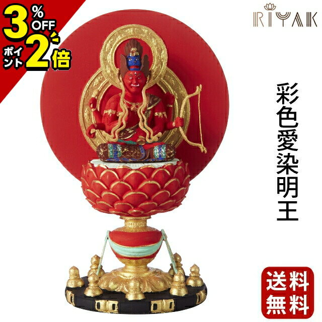 【P2倍+3%OFFクーポン★マラソン限定】仏像 RIYAK 彩色愛染明王 BASIC 木彫り 彫刻 木材 おしゃれ
