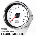 バイク用 電気式 LED ミニ タコメーター 12000RPM 60mm ホワイト ホワイトLED 汎用 回転数 後付け 計器 追加メーター
