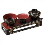 紀州塗 4.5寸 仏器膳 セット 霊供膳 杢目調 黒内朱 椀付 仏器台 20.5×14.7cm 謹製 漆器 お仏壇 お膳 精進料理 お盆 お彼岸 命日 法事 日本製