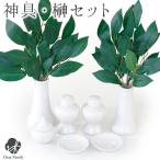 神具 7点 & 造花 榊 1対 セット お祀り 神棚用 枯れない 神具セット 水玉 榊立 瓶子 白皿 神仏 お供え物 アーティフィシャル 本榊 ミニ コンパクト 即日発送